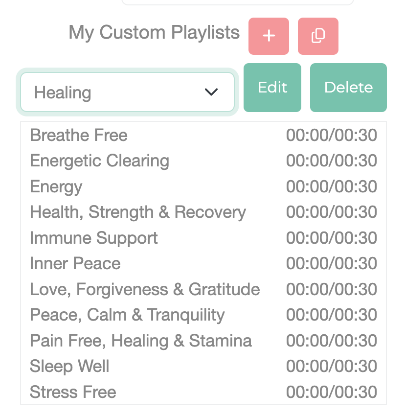 Create your own playlists based on what you want to experience energetically! You can create an UNLIMITED number of playlists for various health conditions for you or your clients!
